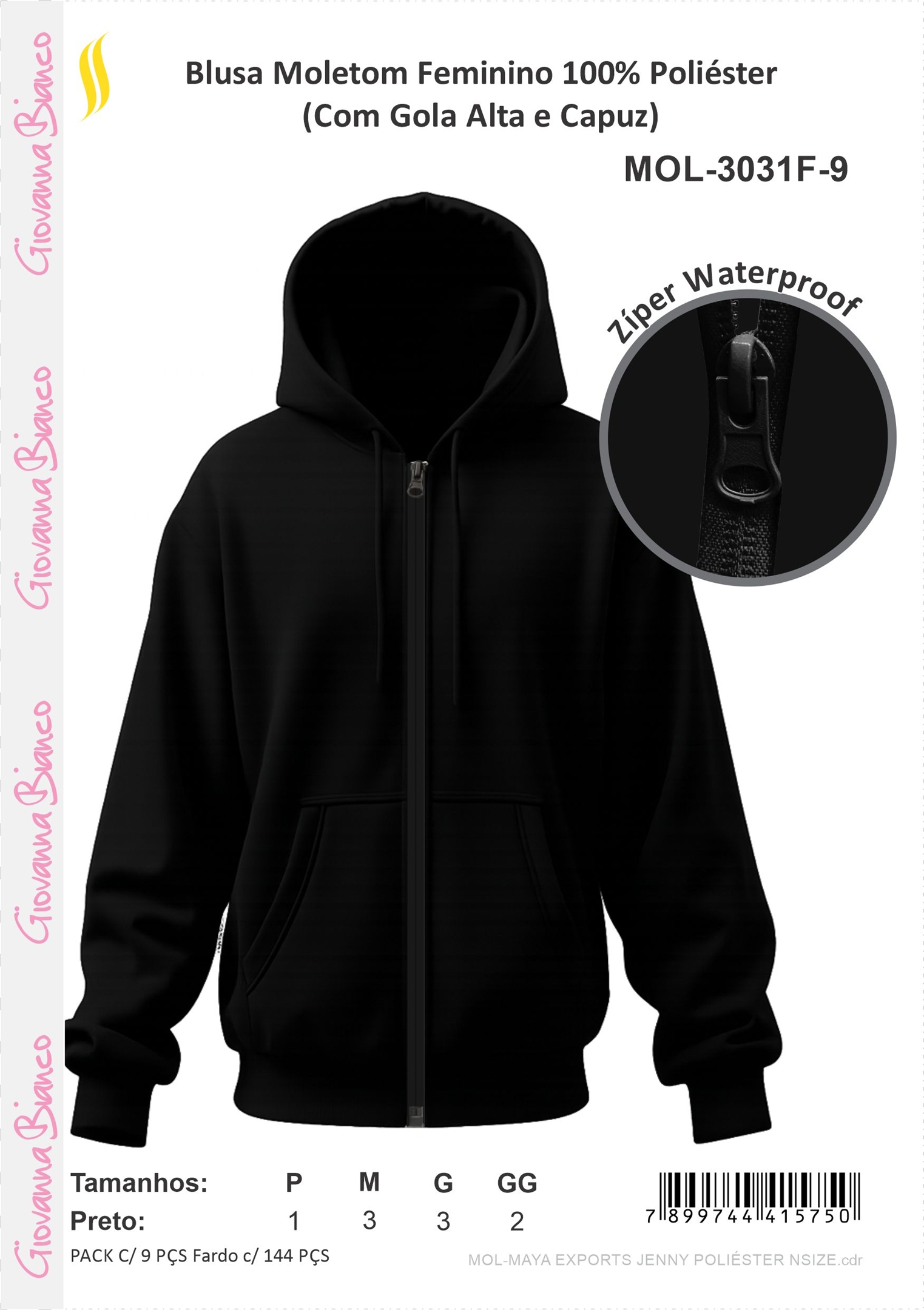 MOLETOM FEM 100%POL GOLA ALTA C/CAPUZ PRETO