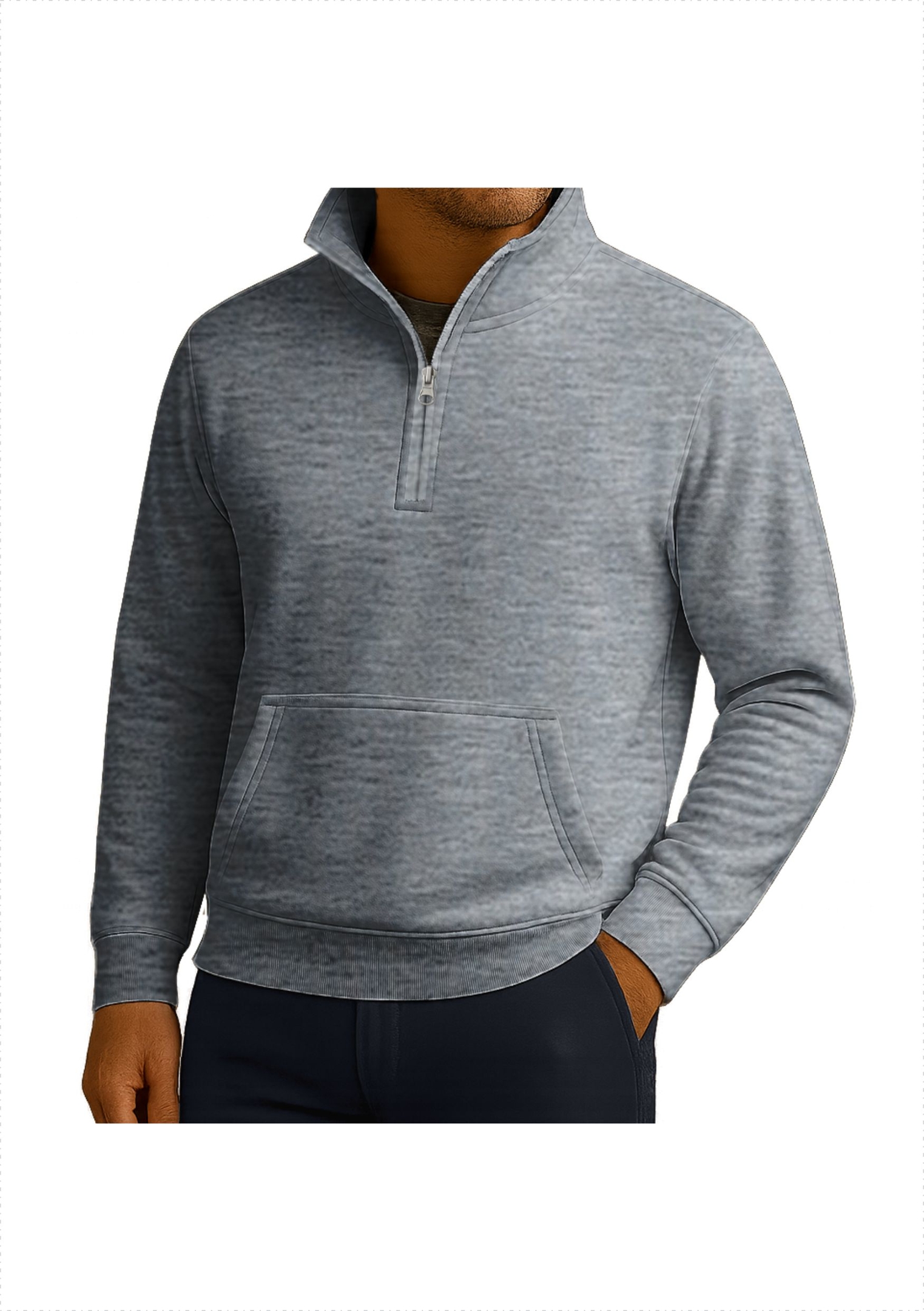 MOLETOM MASC 100%POL CANGURU GOLA ALTA M. ZIPER CINZA