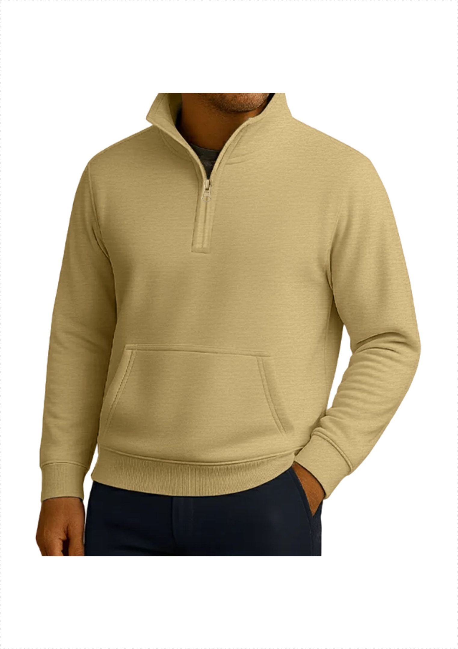 MOLETOM MASC 100%POL CANGURU GOLA ALTA M. ZIPER BEGE