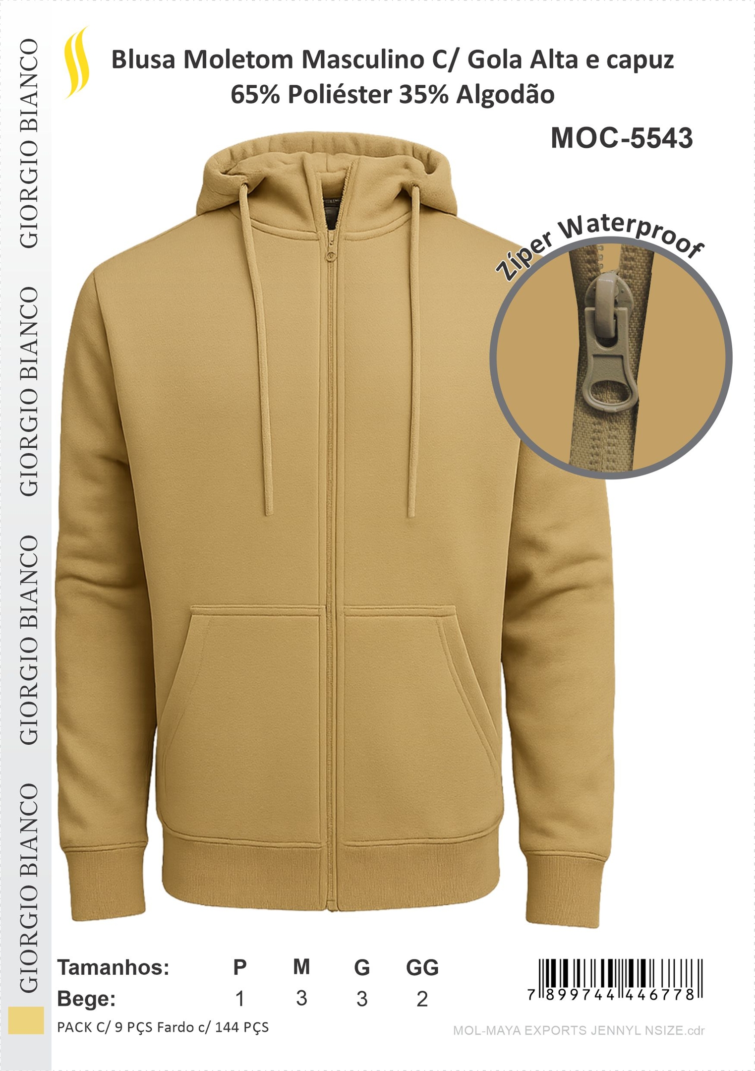 MOLETOM MASC 65%POL 35%ALG GOLA ALTA C/CAPUZ BEGE