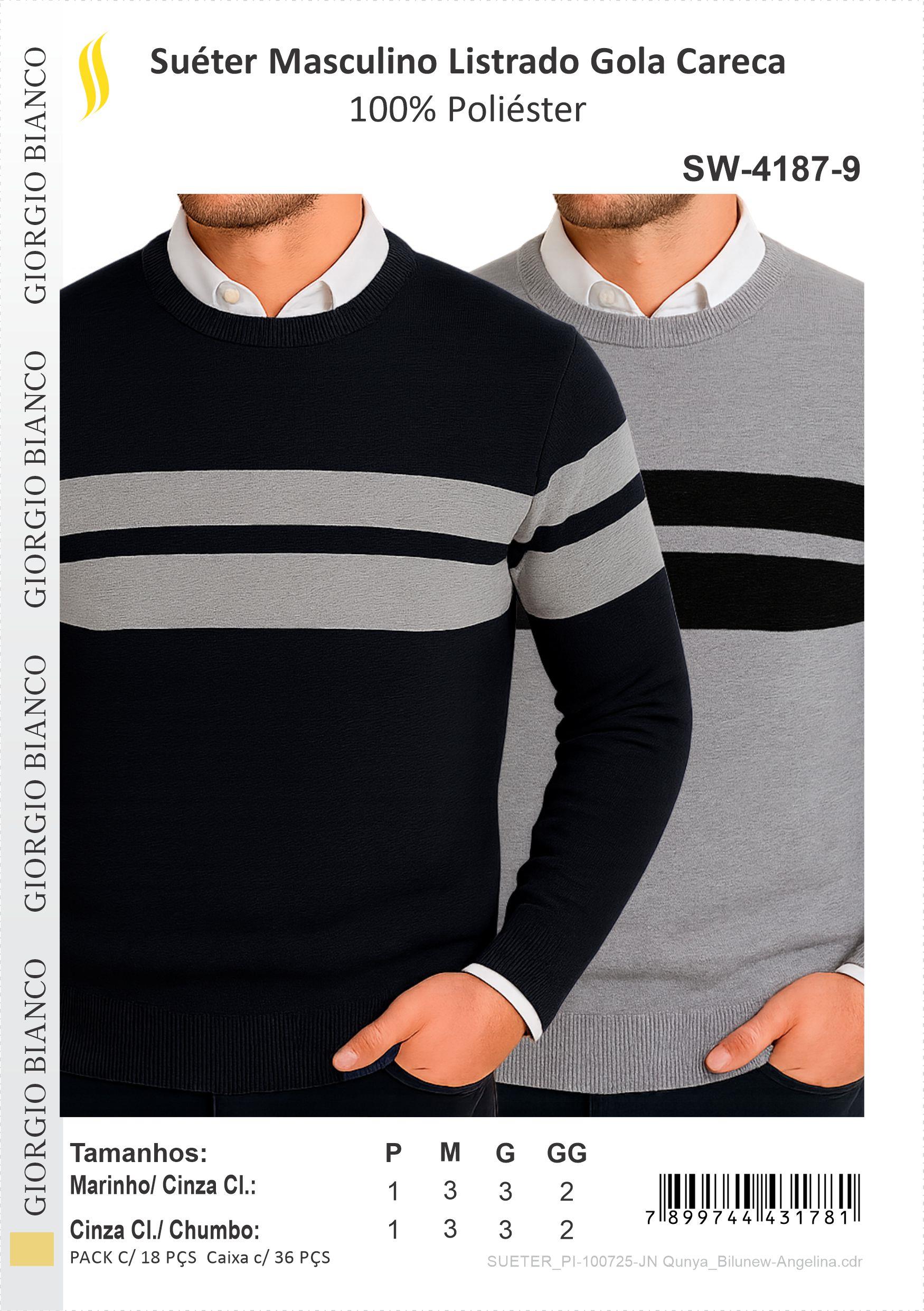 SUETER MASC 100%POL LISTRADO GOLA U SORTIDO