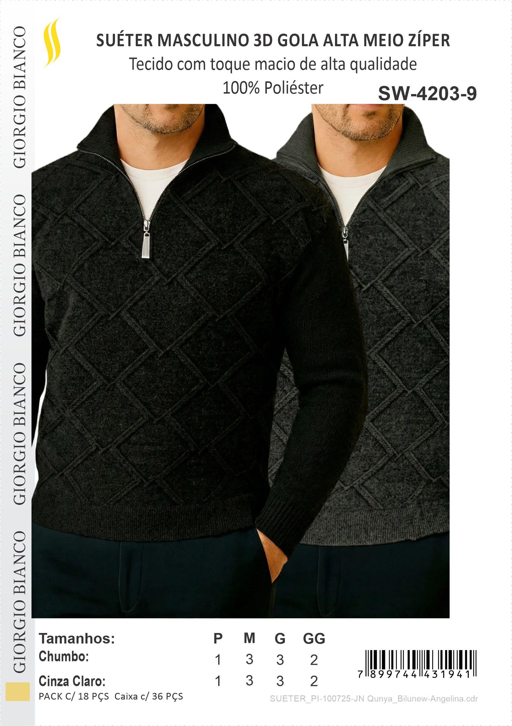 SUETER MASC 100%POL CASUAL 3D MEIO ZIPER CHUM/CZA