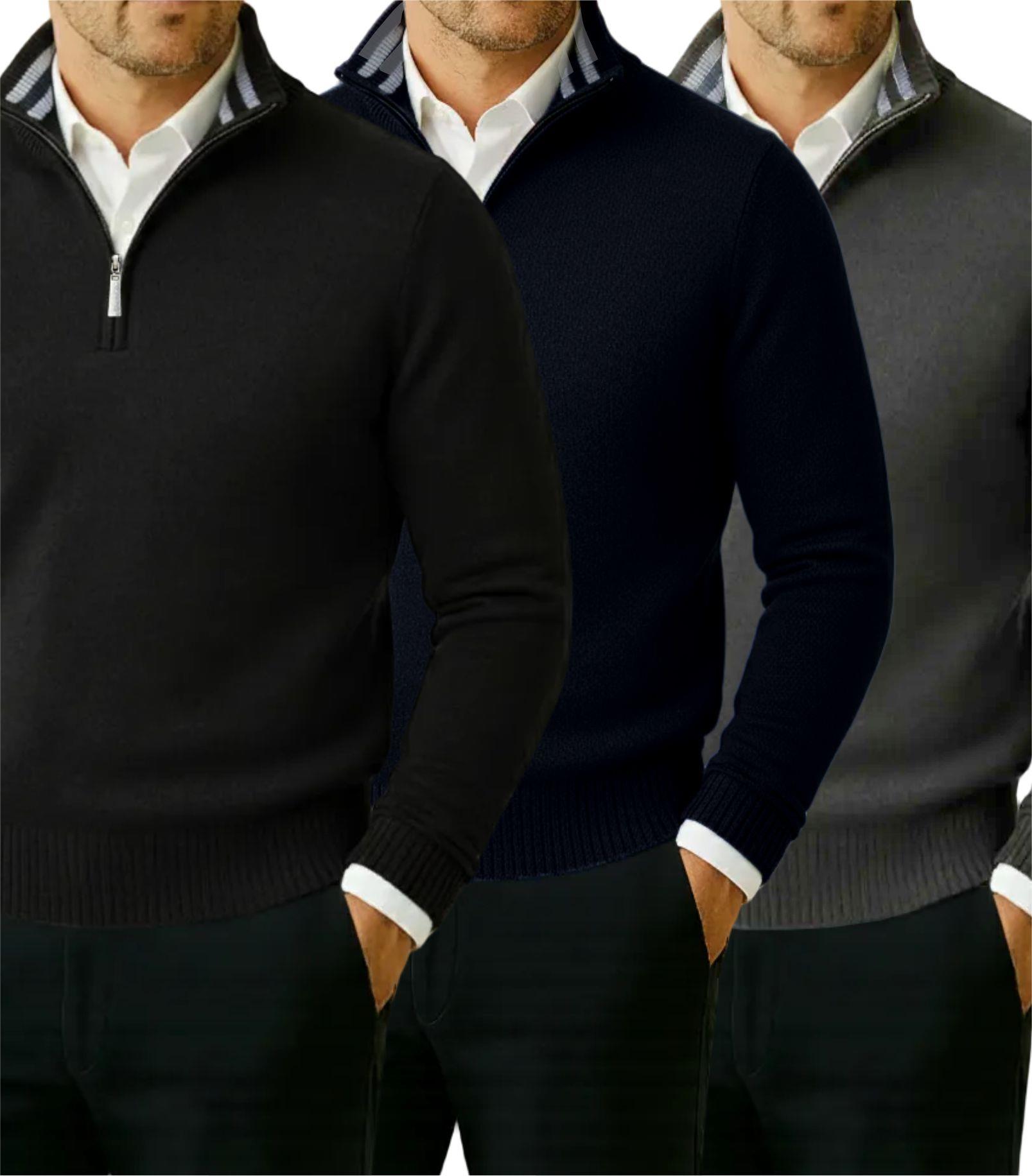 SUETER MASC 100%POL LISO GOLA ALTA LISTRA MEIO ZIPER SORTIDO