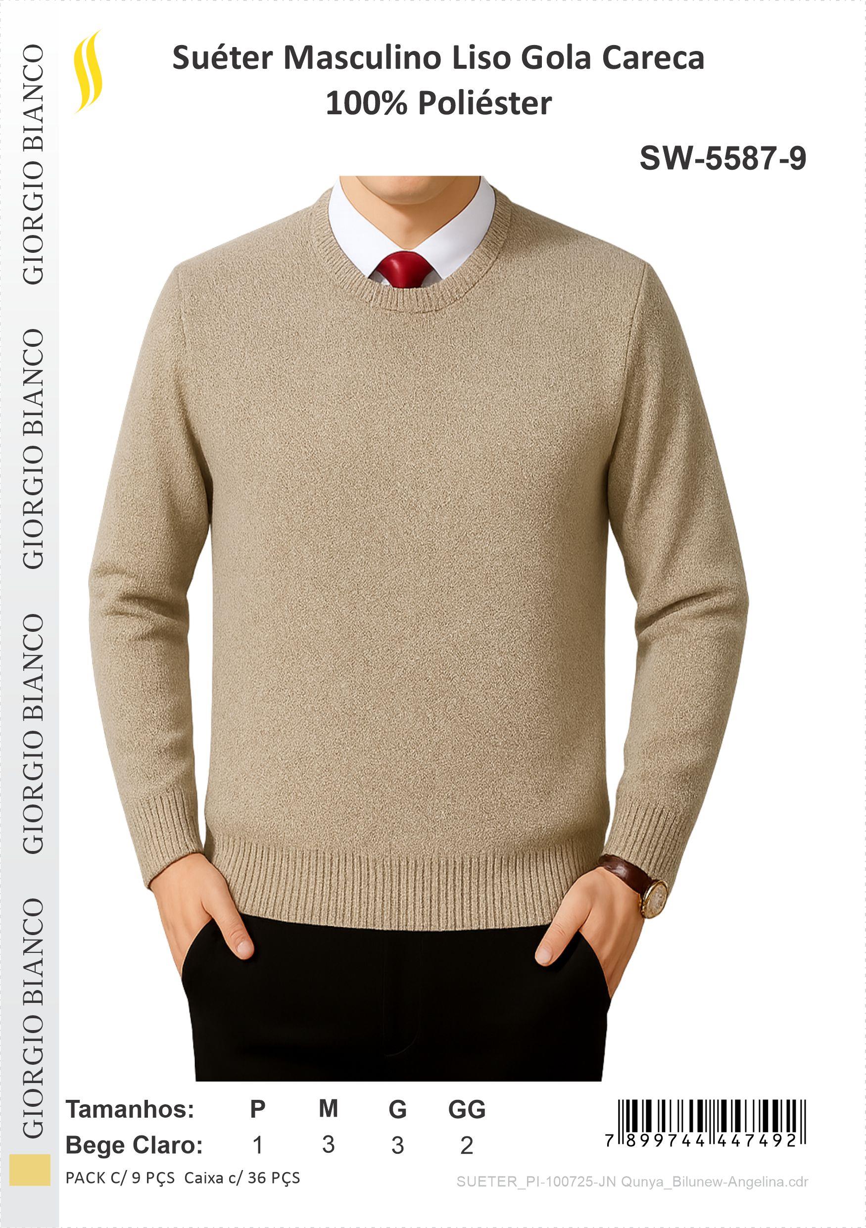 SUETER MASC 100%POL LISO GOLA U MESCLA BEGE CLARO