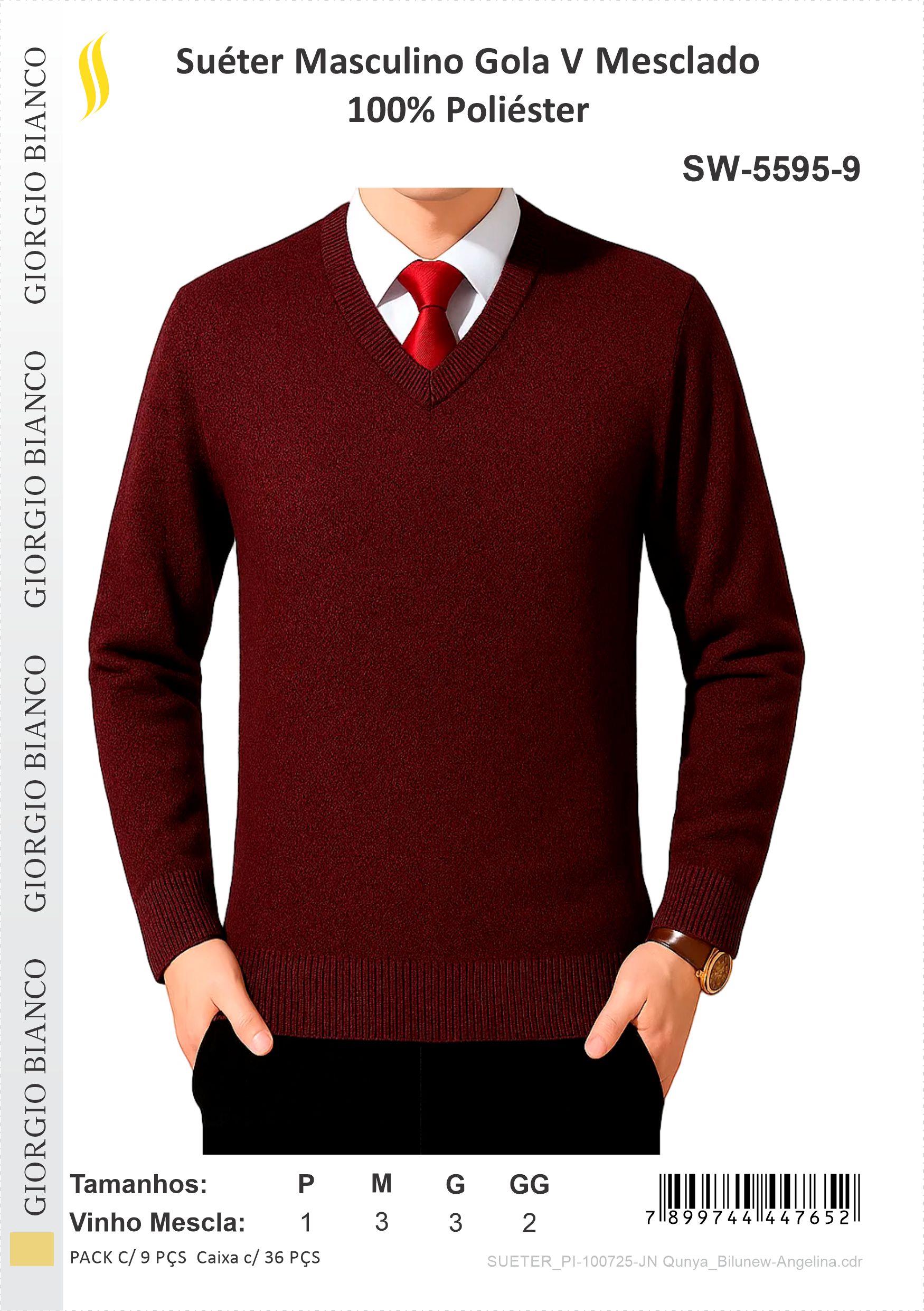 SUETER MASC 100%POL LISO GOLA V MESCLA VINHO