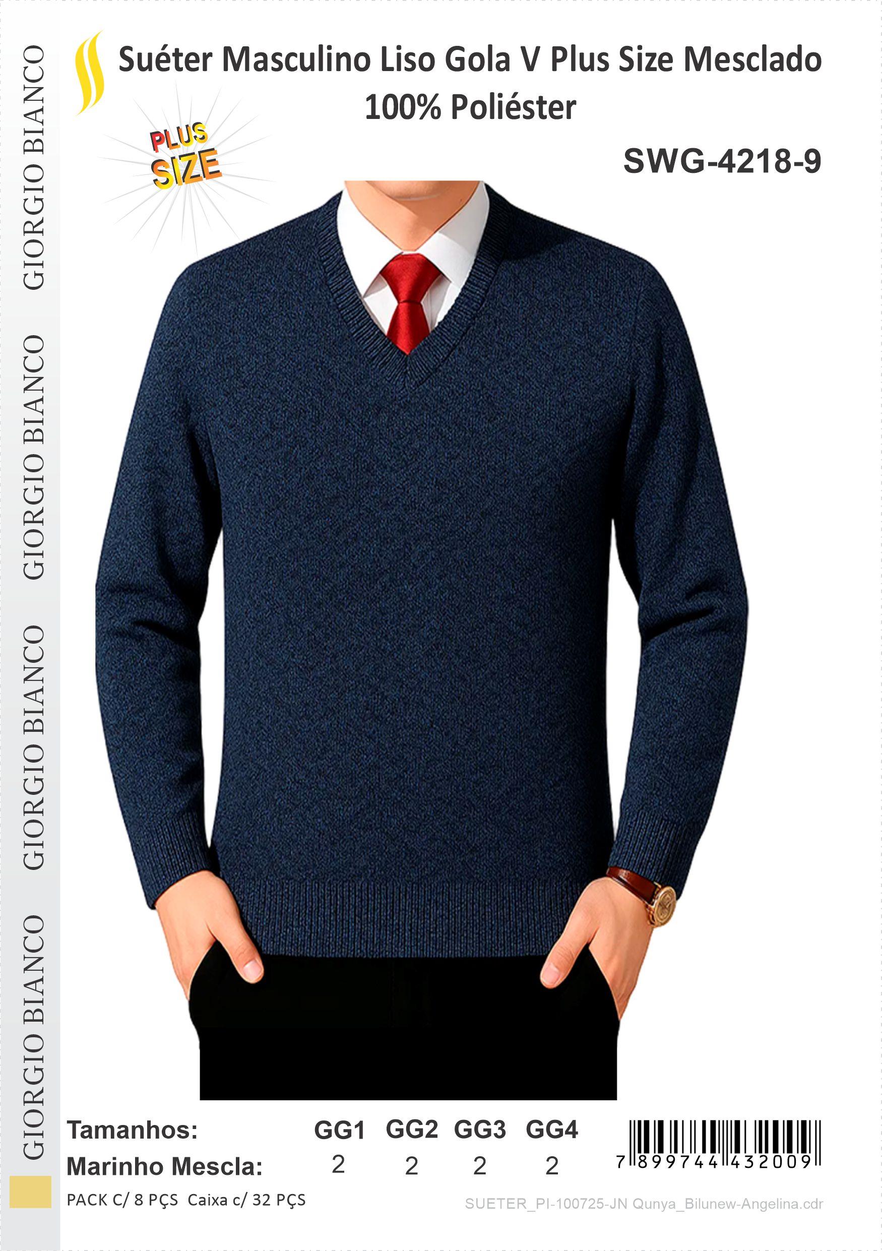 SUETER MASC 100%POL LISO GOLA V PLUS SIZE MESCLA MARINHO