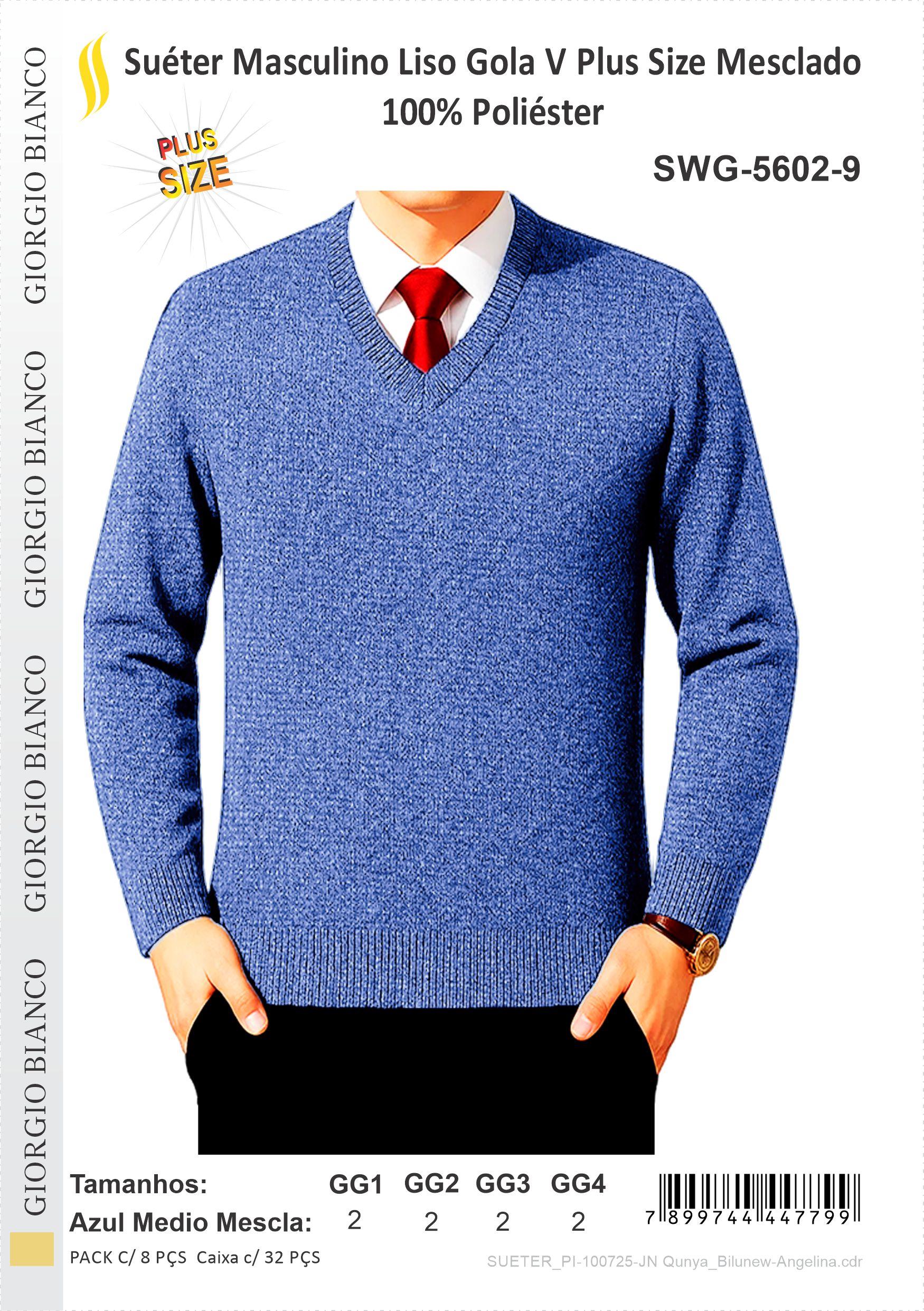 SUETER MASC 100%POL LISO GOLA V PLUS SIZE MESCLA AZ/MEDIO