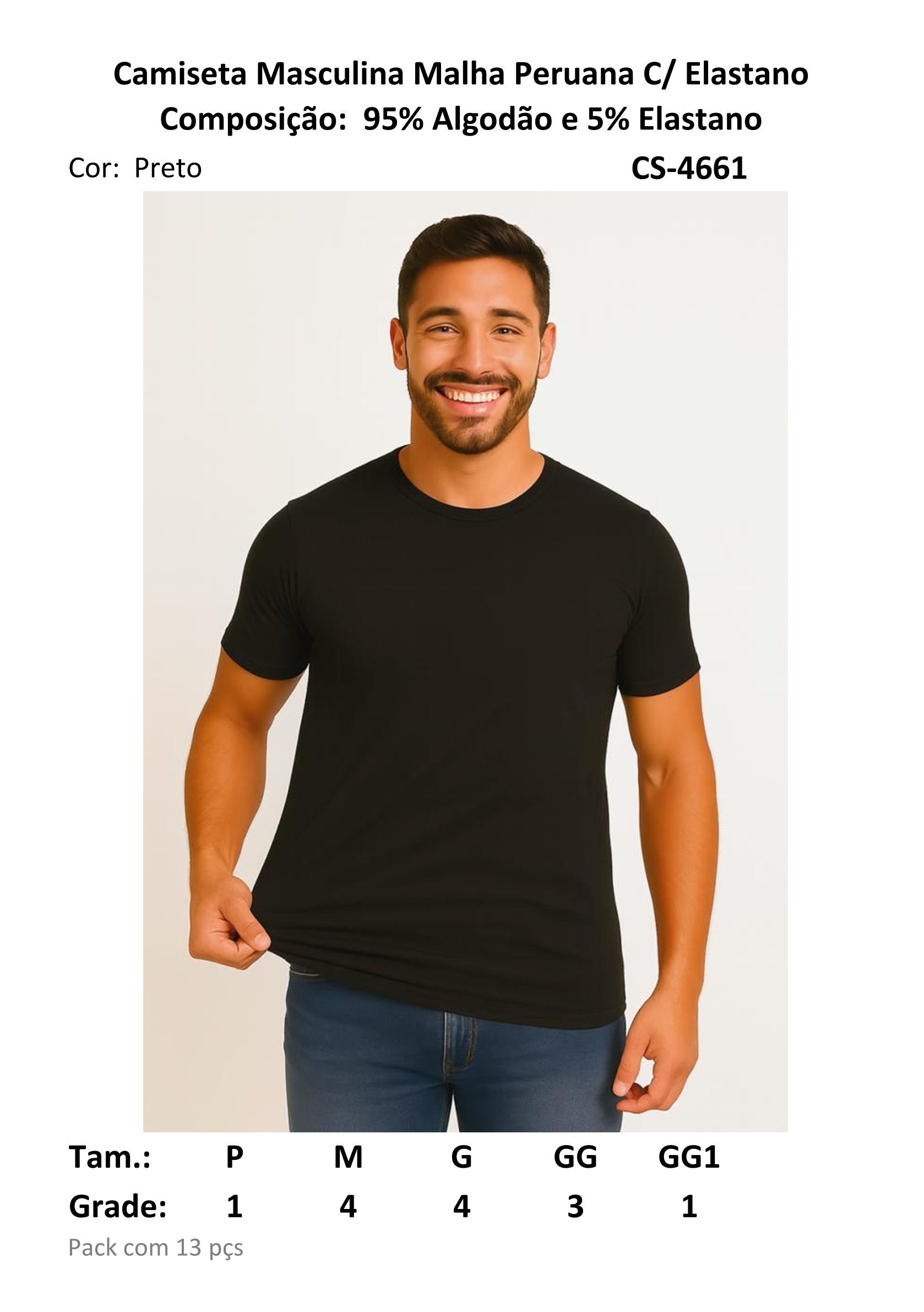 CAMISETA MASC M/M 95%ALG 5%EL GOLA CARECA PTO