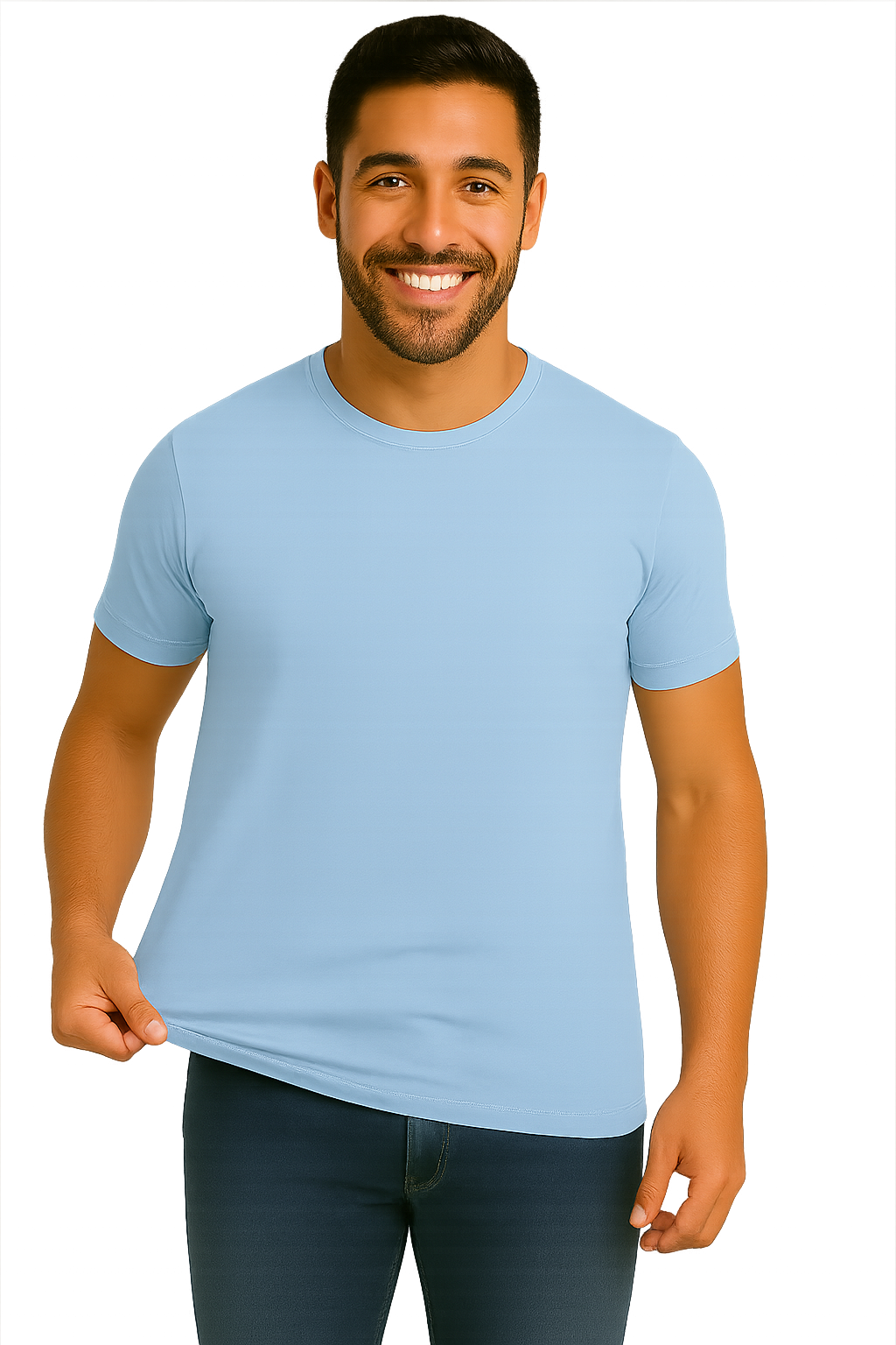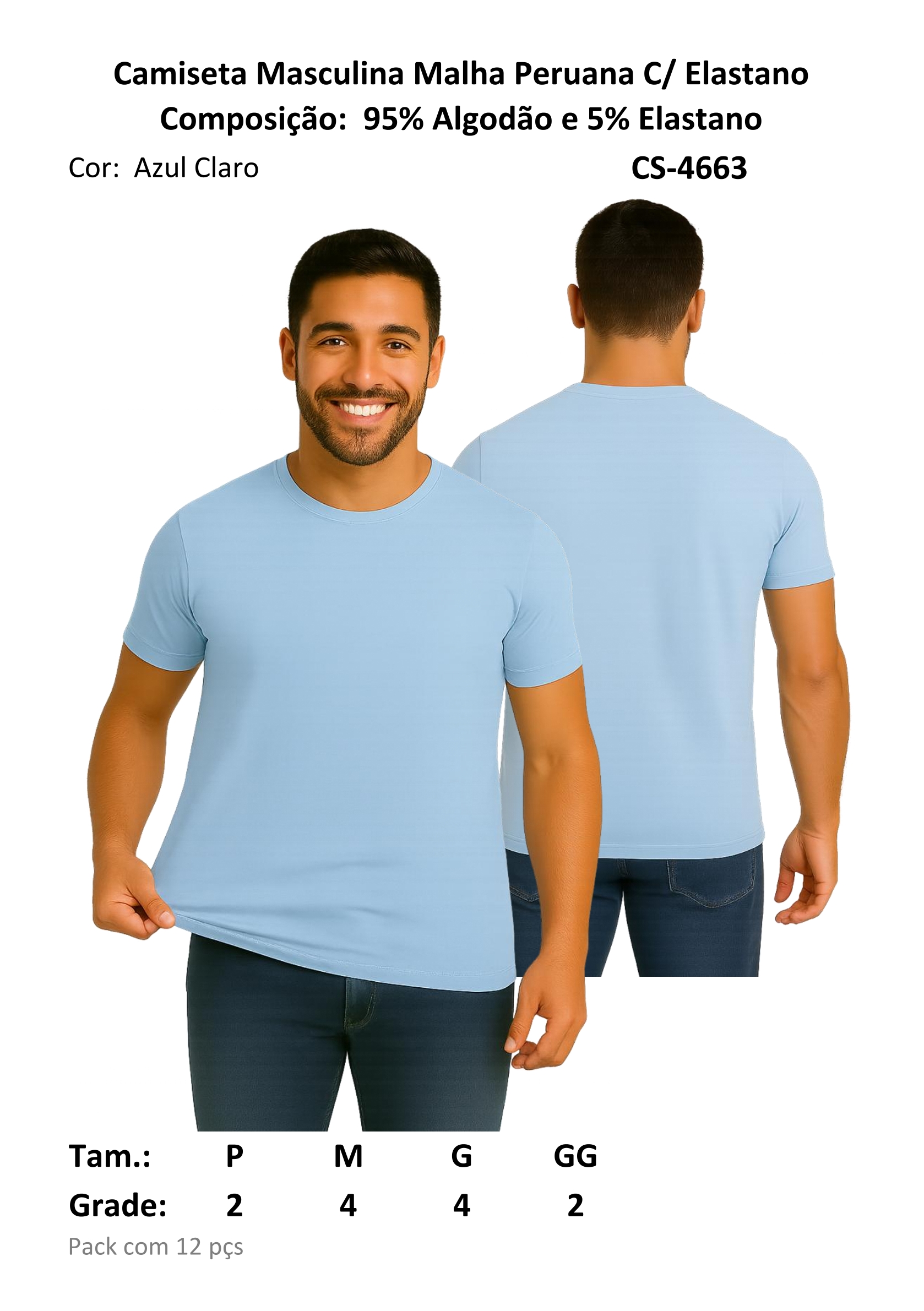 CAMISETA MASC M/M 95%ALG 5%EL GOLA CARECA AZ/CL