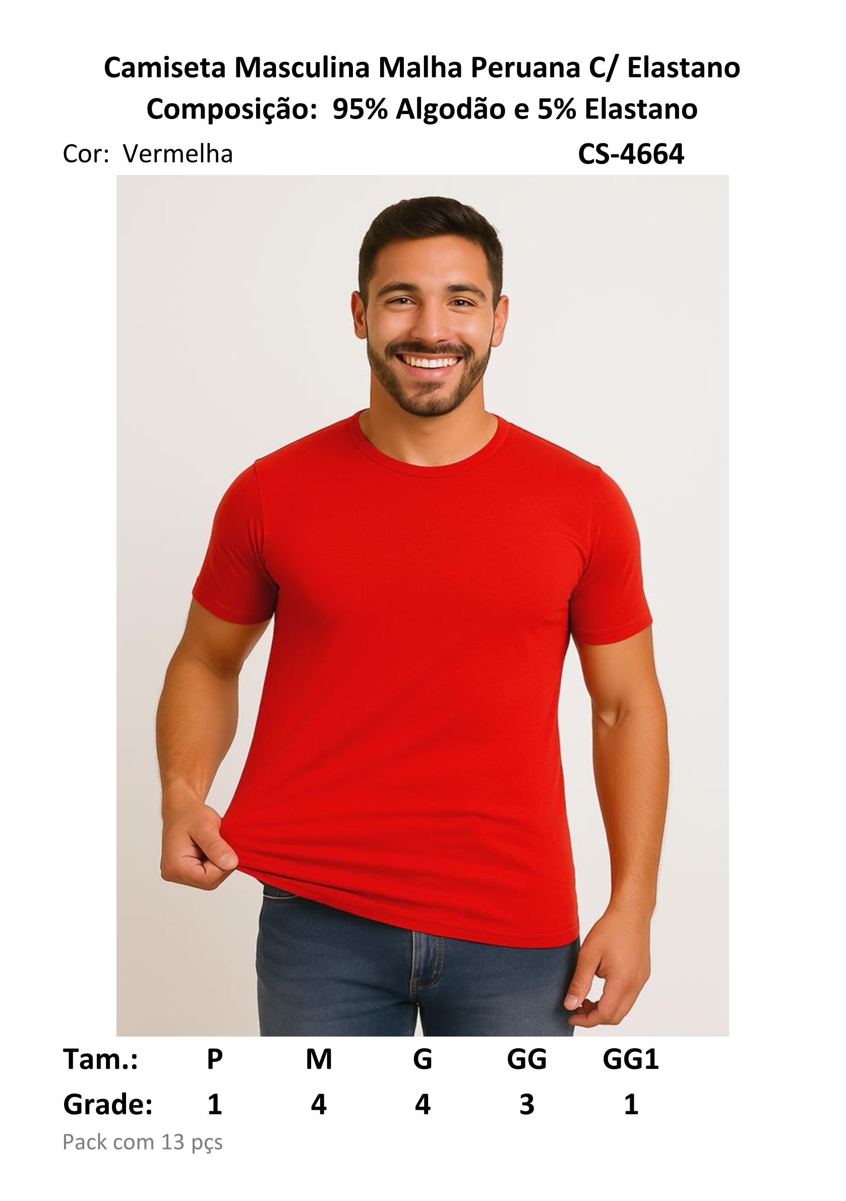 CAMISETA MASC M/M 95%ALG 5%EL GOLA CARECA VERM