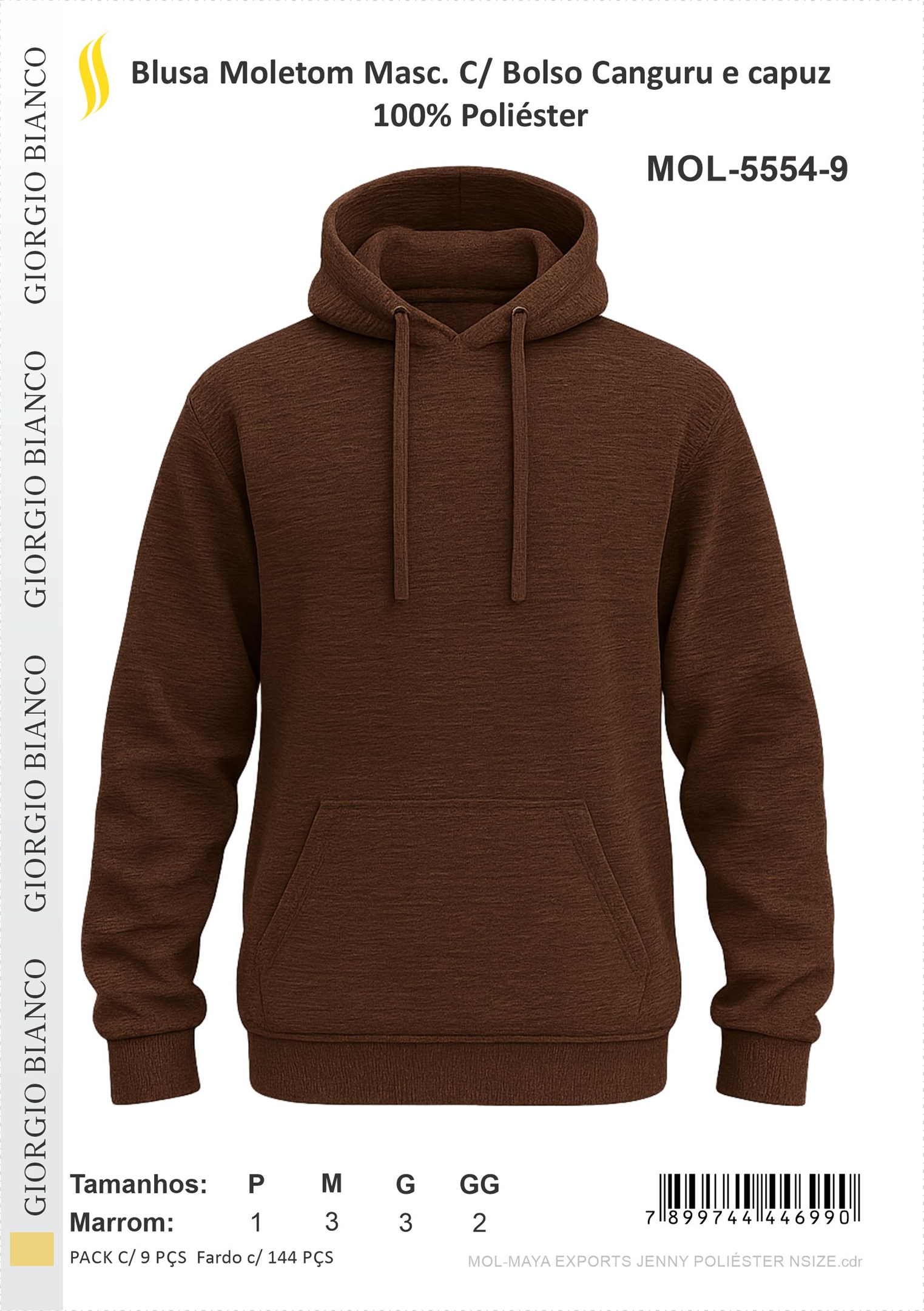 MOLETOM MASC 100%POL CANGURU G. ALTA C/ CAPUZ MARROM