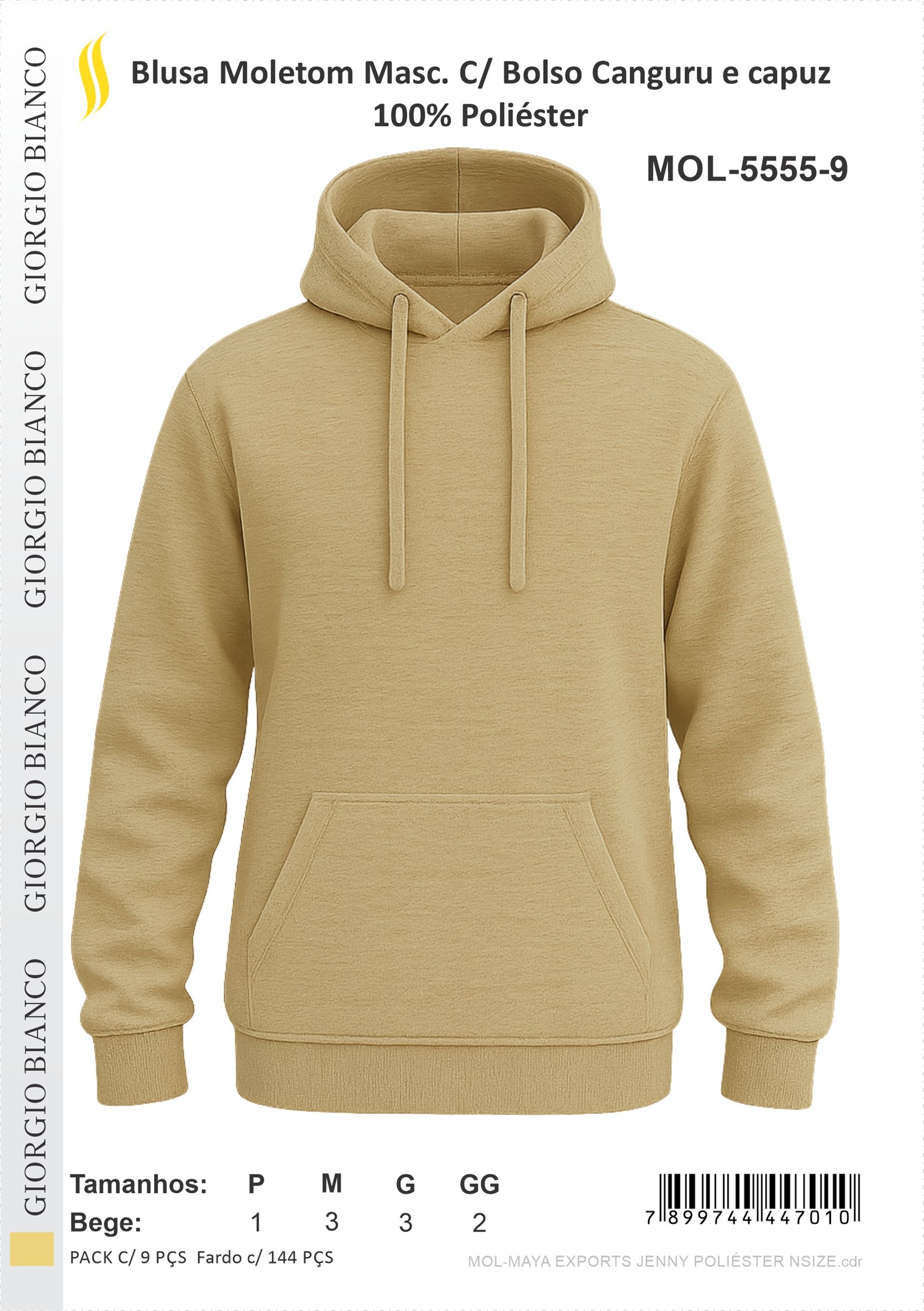 MOLETOM MASC 100%POL CANGURU G. ALTA C/ CAPUZ BEGE