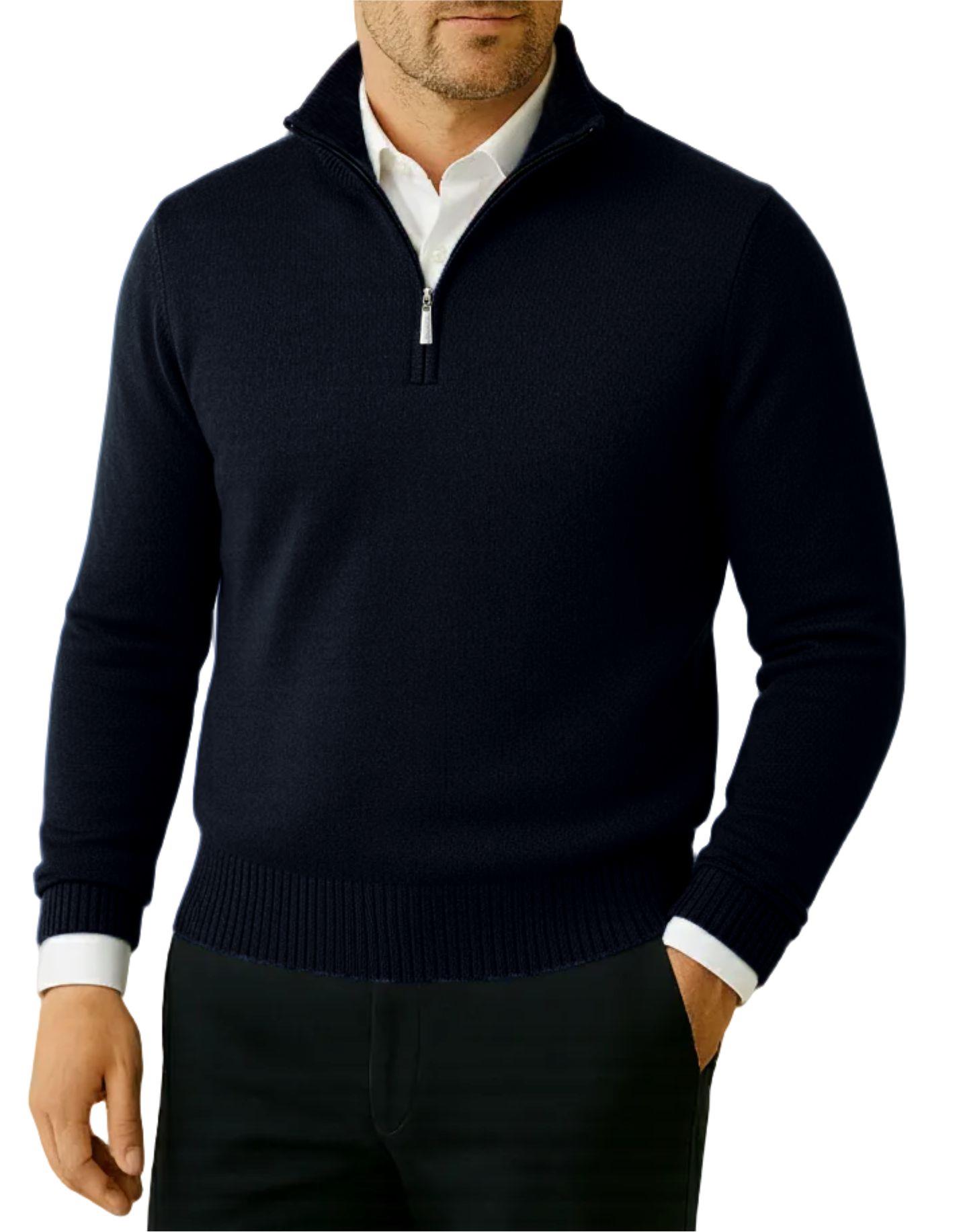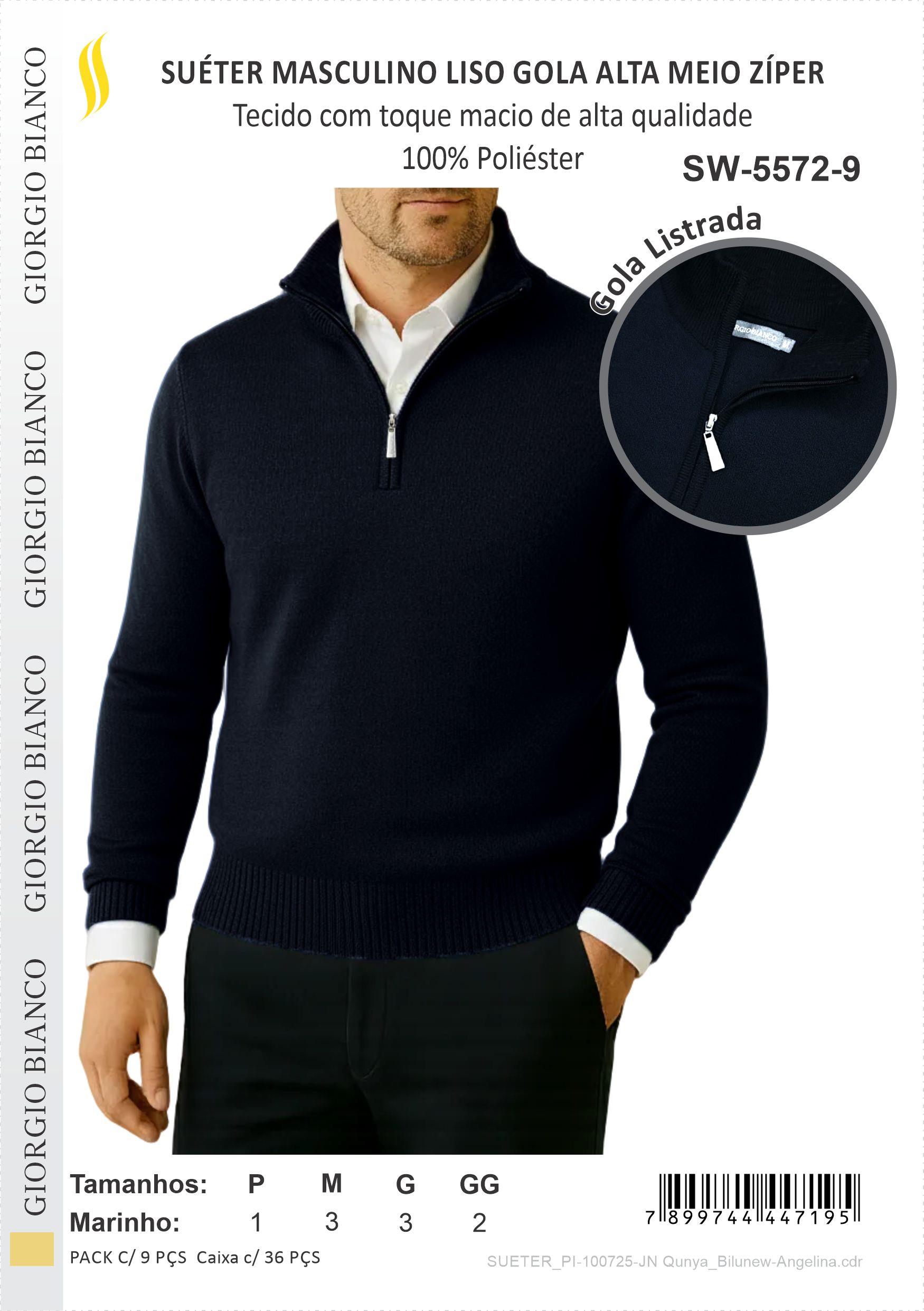 SUETER MASC 100%POL LISO GOLA ALTA MEIO ZIPER MARINHO