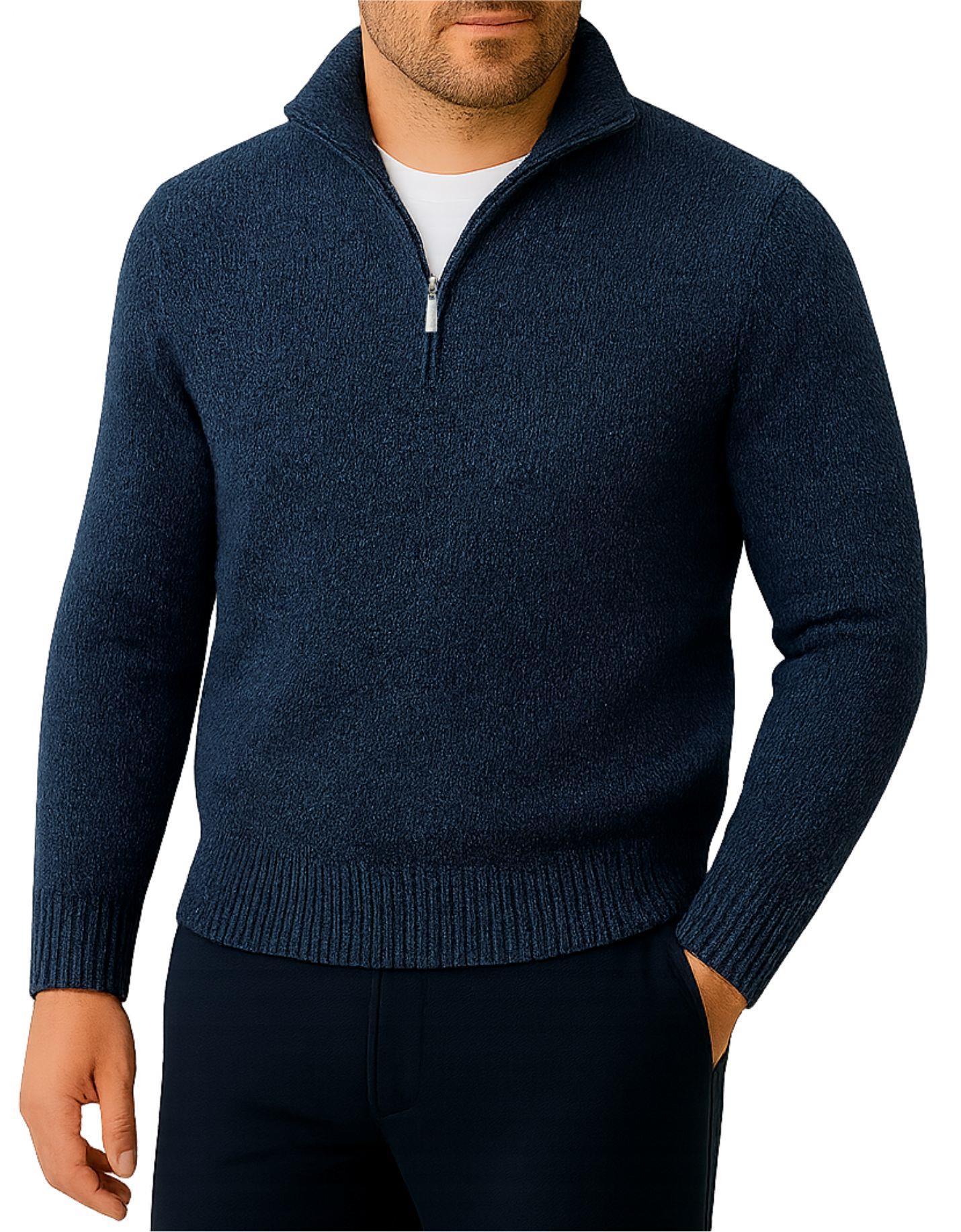 SUETER MASC 100%POL LISO GOLA ALTA MEIO ZIPER MESCLA MARINHO