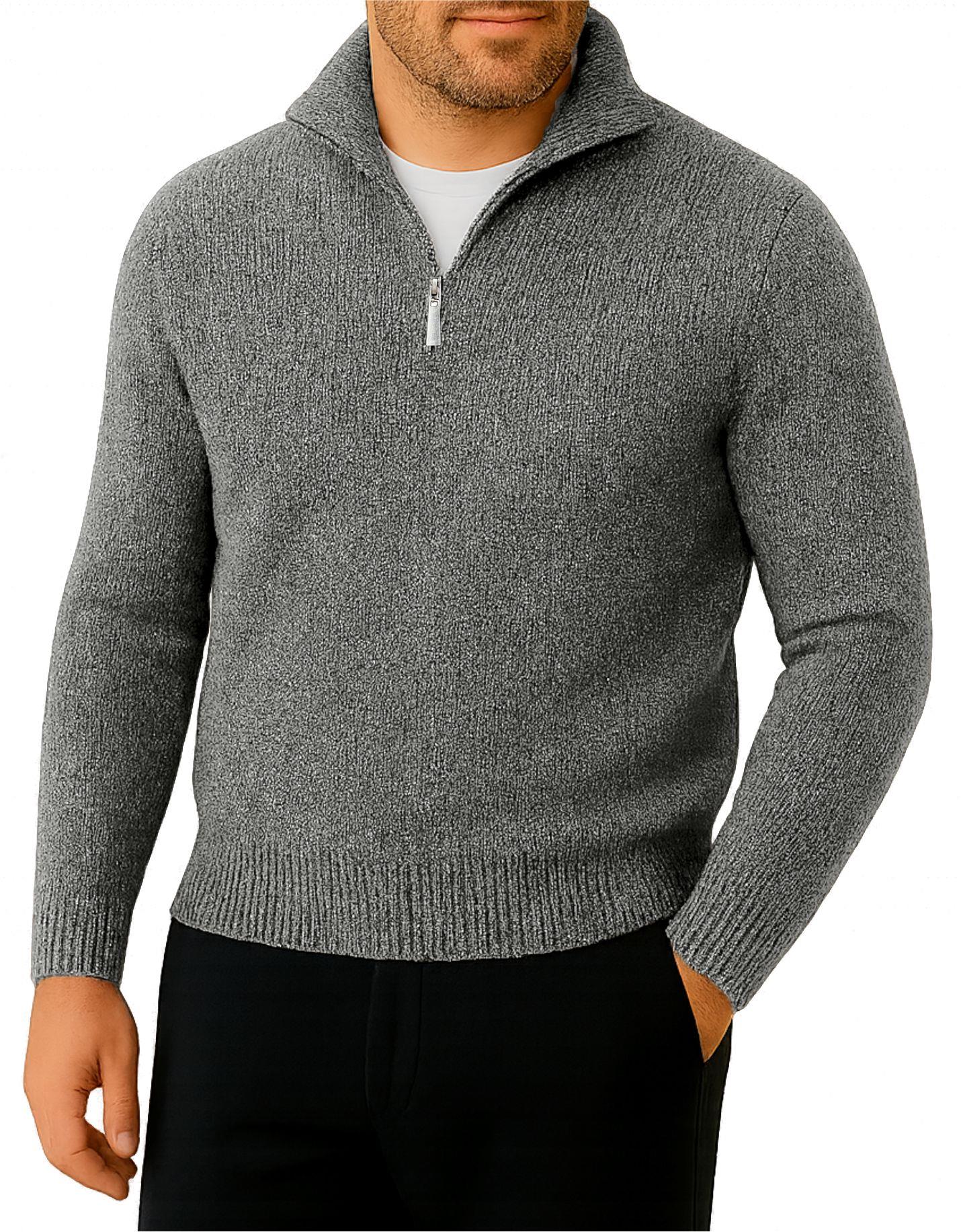 SUETER MASC 100%POL LISO GOLA ALTA MEIO ZIPER MESCLA CZA MEDIO