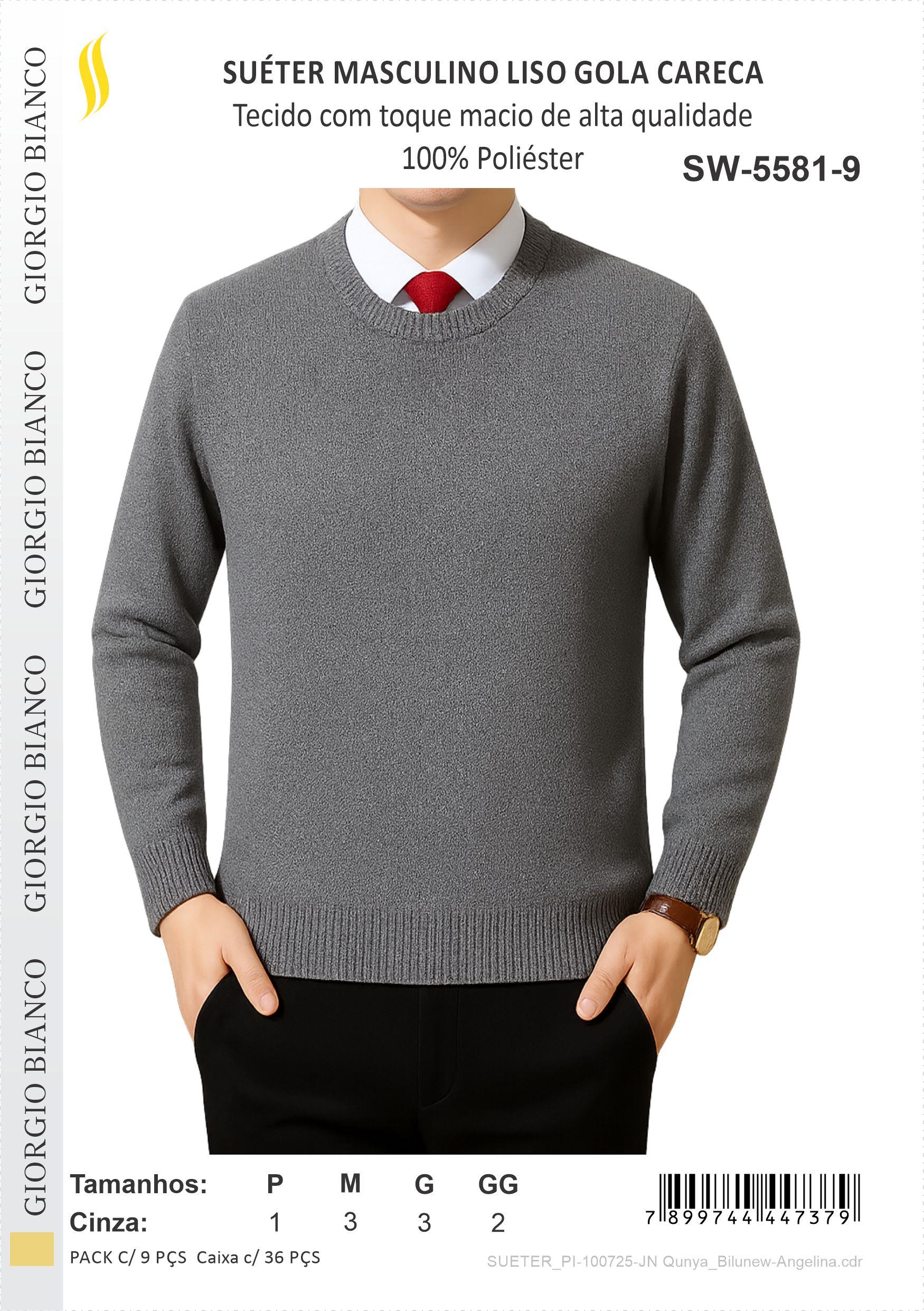 SUETER MASC 100%POL LISO GOLA U CINZA
