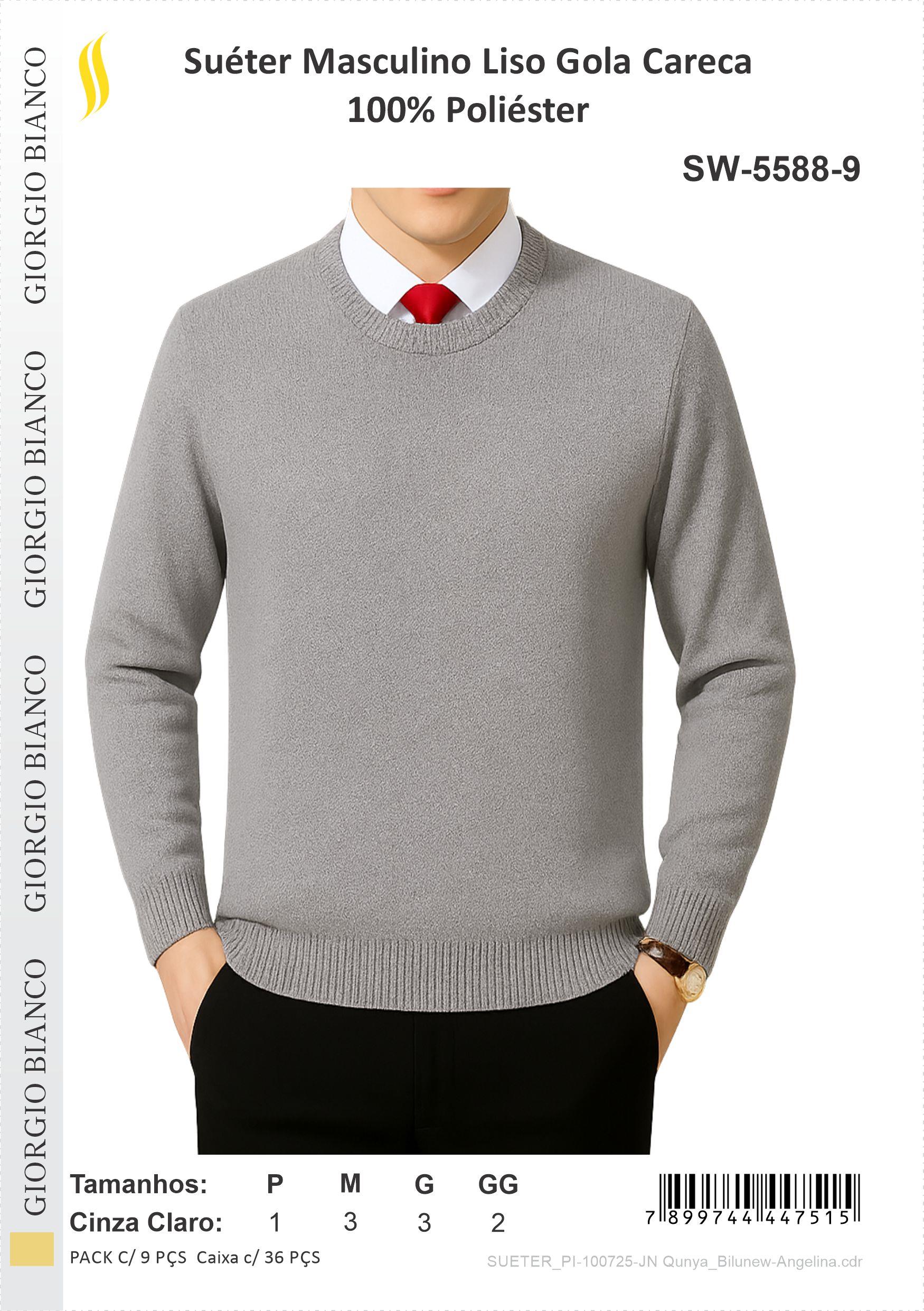SUETER MASC 100%POL LISO GOLA U MESCLA CINZA